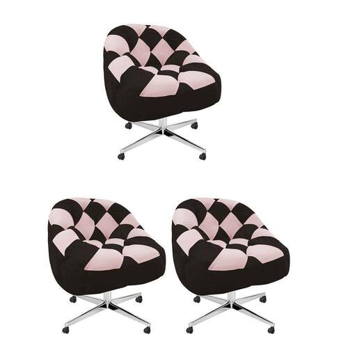 Kit 03 Poltrona Paloma Escritório Sala Giratória Metal Rodízio Sintético Marrom E Sintético Rosa Bebê - Dominic Decor