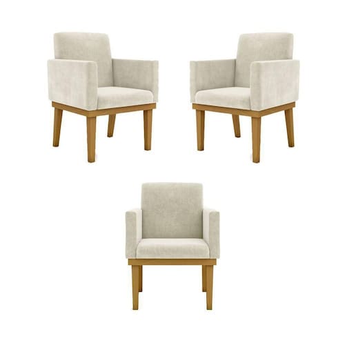 Kit 03 Poltronas Base Reforçada - Sala Quarto Escritorio Cor:bege
