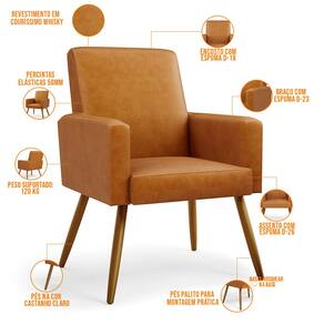 Não é novidade para ninguém que uma boa poltrona precisa ser bastante confortável, com materiais de qualidade e alta durabilidade. A Poltrona Decorativa Para Sala De Estar Maria W01 Pés Palito Couríssimo Whisky - Lyam Decor vem exatamente com essa proposta, sofisticado e versátil, com certeza irá valorizar ainda mais seu ambiente. As possibilidades para sua disposição são infinitas, seja para escritório, recepção, sala de espera ou estar, entre outras, seu conforto e beleza transformarão sua decoração por inteiro. Cabe mencionar também o revestimento em Couríssimo que contrasta perfeitamente com os pés palito na cor castanho, dando uma sutil delicadeza à peça. Garanta já a sua!