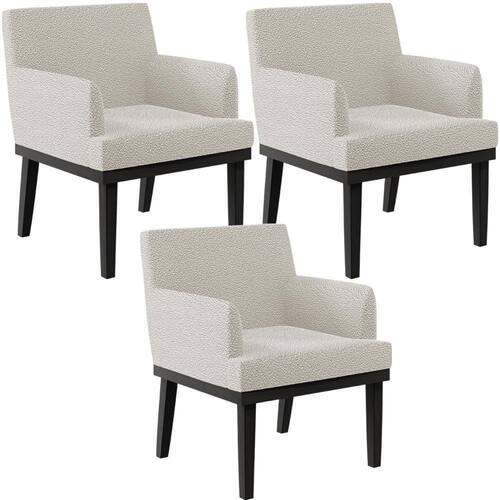 ColorSimple: Creme | MaterialFamily: Madeira | ProductWeight: 33 kg | Color: Creme | ColorFamily: Creme | Model: Beatriz | OriginCountry: | ColorSupplier: Creme | Material: Madeira | ProductContents: 03 Poltronas Decorativas | ProductLength: 68 cm | ProductHeight: 81 cm | SizeDescription: Altura: 81 cm Largura: 61 cm Profundidade: 68 cm | OriginState: PR | SupplierSimpleName: Kit 03 Poltronas Decorativas Sala de Estar Base Preto Beatriz W01 Bouclê Creme - Lyam Decor | ProductInstructions: Produto para uso em ambiente interno, nao devendo ficar exposto ao sol, calor e umidade excessivos. | ProductWidth: 61 cm | ProductWarranty: 90 dias após o do produto