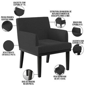 Não é novidade para ninguém que uma boa poltrona precisa ser bastante confortável, com materiais de qualidade e alta durabilidade. O Kit 03 Poltronas Decorativas Sala de Estar Base Preto Beatriz Bouclê Preto - Lyam Decor vem exatamente com essa proposta, sofisticada e versátil, com certeza irá valorizar ainda mais seu ambiente. As possibilidades para sua disposição são infinitas, seja para escritório, recepção, sala de espera ou estar, entre outras, seu conforto e beleza transformarão sua decoração por inteiro.