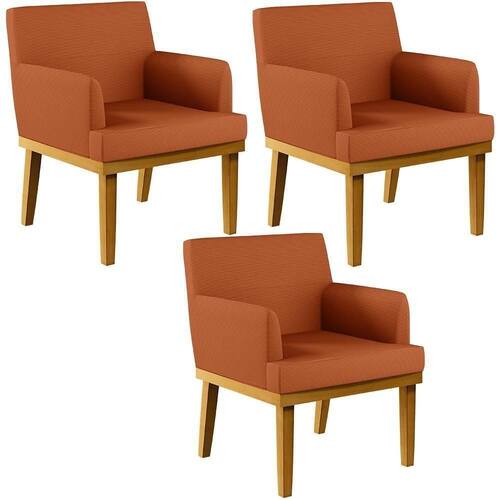 Não é novidade para ninguém que uma boa poltrona precisa ser bastante confortável, com materiais de qualidade e alta durabilidade. O Kit 03 Poltronas Decorativas Para Sala De Estar Beatriz Base Mel W01 Tecido Terracota - Lyam Decor vem exatamente com essa proposta, sofisticada e versátil, com certeza irá valorizar ainda mais seu ambiente. As possibilidades para sua disposição são infinitas, seja para escritório, recepção, sala de espera ou estar, entre outras, seu conforto e beleza transformarão sua decoração por inteiro. Cabe mencionar também o revestimento em Tecido Terracota, que contrastam perfeitamente com os pés na cor Mel dando uma sutil delicadeza à peça e garante o destaque que ela merece.