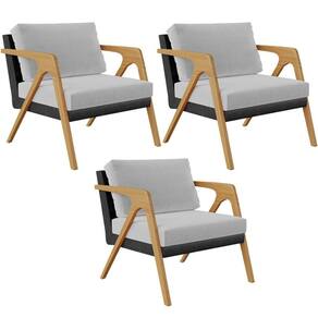 O Kit 03 Poltronas Decorativas Sala Estar Pietra L02 Couríssimo Preto Linho Cinza - Lyam Decor se sobressai em qualquer ambiente, permite diversas combinações harmônicas e ainda proporciona muito aconchego para sua decoração! O link da estrutura de madeira com a composição de revestimentos em linho e couríssimo, somados ao seu design geométrico garantem extrema idade, além de expressar toda a elegância que ele possui.