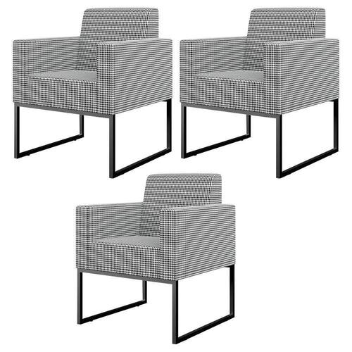 Se você está buscando por qualidade e conforto unidos em um único produto, o Kit 03 Poltronas Decorativas Sala Base fixa Metal Helô L02 Pied Poule - Lyam Decor vem para superar todas as suas expectativas! Extremamente sofisticado, conta com base fixa de metal na cor preto que conversa super bem com seu revestimento de acabamento impecável, transmitindo requinte para o restante da decoração.