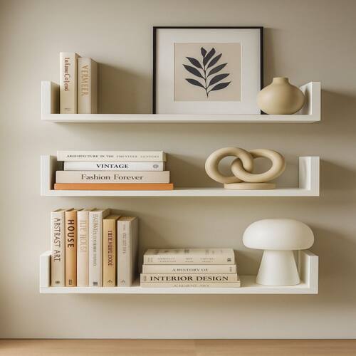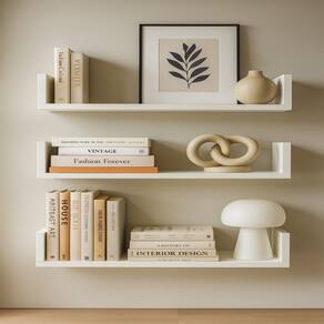 KIT com 03 prateleiras 100MDF 60cm Excelente opcao para armazenar livros e decoracoes em geral, proporcionando ao ambiente um toque de elegancia e organizacao. -Material 100MDF de 15mm, com bordas em fita de PVC -Suporte discreto que se torna imperceptivel quando em uso - Item ja vem montado -Acompanha kit de instalacao Descricao: Comprimento: 60cm Altura: 10cm Profundidade: 15cm Cor: Branco fosco Suporta ate 6kg por peca Itens inclusos: 03 Prateleira 60cm Buchas Parafusos Tapa furos