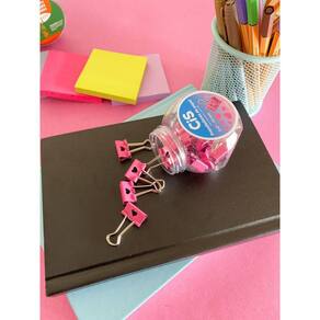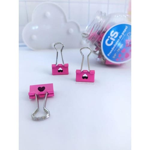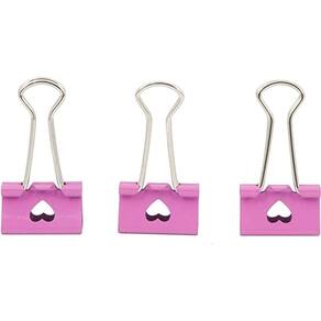 kit 03 Prendedor De Papel Binder Rosa Coração 19mm 3/4 - Cis