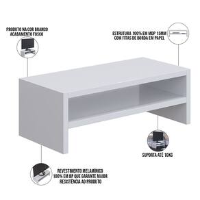 Características: Estrutura 100% em MDP 15mm. Fitas com borda de papel. Revestimento melamínico 100% em BP, que garante maior resistência ao produto. Suporta até 10Kg. Produto na Cor Branco, com acabamento Fosco.