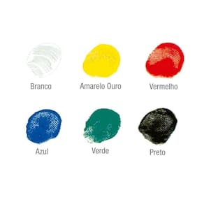 Com 6 potes de 30ml cada Cores: Branco, amarelo, vermelho, azul, verde e preto.