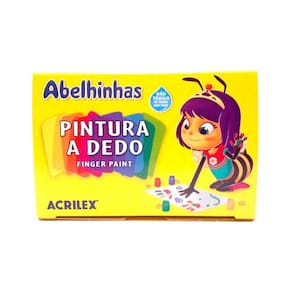 Pintura a Dedo 6 Cores Acrilex Tinta ideal para atividades com as mãos Aumenta o desenvolvimento da percepção tátil e da coordenação motora Pode ser aplicada com o dedo, pincel ou esponja sobre papel, papel cartão ou cartolina.