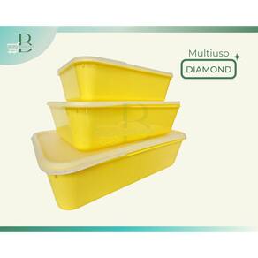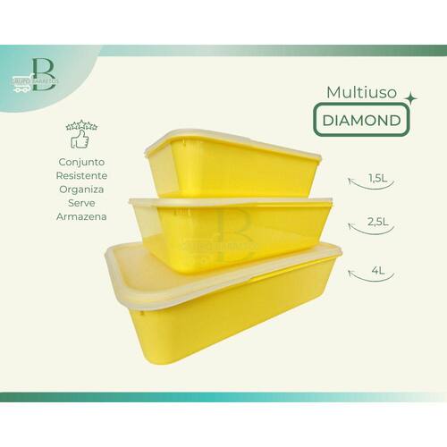 Perfeito para aqueles que adoram organização, as vasilhas servem diversos própositos como armazenar, transportar com sua grande resistência e com os benefícios de não pegar cheiro e não manchar. Os potes te proporcionam uma ótima opção de organização de alimentos em geladeiras e no transporte de alimentos com a segurança e praticidade. Capacidade total de 8 litros. Com 03 vasilhas de tamanhos diferentes.