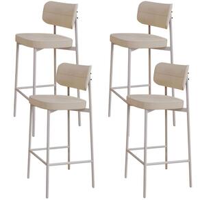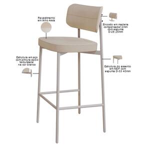 Kit 04 Banquetas Alta Bar Cozinha Sala De Jantar Aço Branco Kaira C01 Linho Areia - Lyam Decor - Marrom