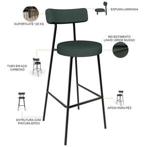 Amplamente moderna, dispondo de muito realce e design singular, O Kit 04 Banquetas Altas Bar Cozinha Sala De Jantar Estrutura Em Aço Milão L02 Linho Verde Musgo - Lyam Decor vem com a personalidade e elegância que sua decoração merece! Estruturada em aço carbono, contrasta lindamente com o encosto e assento estofados, cabe mencionar ainda seu revestimento em Linho, é confeccionada por materiais de excelente qualidade, extremamente resistentes e aconchegantes. Possui altura ideal, garantindo o encaixe perfeito no ambiente, otimizando seu espaço e promovendo máximo conforto. Pode ser disposta em bancada, cozinha americana, área gourmet ou home bar, as possibilidades são infinitas e as combinações ficarão perfeitas. Adquira já a sua!!
