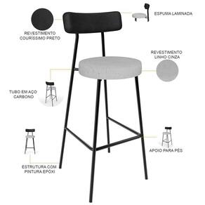 Amplamente moderna, dispondo de muito realce e design singular, o Kit 04 Banquetas Alta Bar Cozinha Sala De Jantar Aço Milão L02 Couríssimo Preto Linho Cinza - Lyam Decor vem com a personalidade e elegância que sua decoração merece! Estruturada em aço carbono, contrasta lindamente com o encosto e assento estofados, cabe mencionar ainda o revestimento do seu encosto em Couríssimo e do assento em Linho, é confeccionada por materiais de excelente qualidade, extremamente resistentes e aconchegantes.