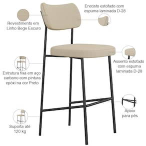 Para você que busca conforto, realce e praticidade, O Kit 04 Banquetas Alta Estofada Elira vai superar todas as suas expectativas! Garante muita comodidade e otimiza o espaço, além de harmonizar com seu estilo decorativo facilmente, podendo ser utilizada em bancadas, cozinha americana, espaço gourmet ou home bar, trazendo um toque especial em sua decoração. Sua proposta de design suavizará seu ambiente sem passar despercebida oferecendo mais leveza e receptividade ao seu lar. Estruturada em aço carbono, contrasta lindamente com o encosto e assento estofados que são extremamente confortáveis, resistentes e aconchegantes. Você merece esta incrível combinação em sua casa, adquira já a sua!