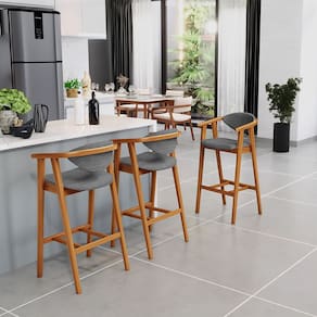 A melhor escolha para os momentos de confraternização no aconchego da sua casa, acaba de chegar! O Kit 04 Banquetas Altas Cecília vem com a personalidade e elegância que sua decoração merece! É ideal desde refeições rápidas, até um Happy Hour com os amigos, família. Seu design único valoriza o ambiente, sem deixar pra trás a beleza e qualidade! Para deixar a sua área gourmet mais aconchegante, ela possui assento e encosto estofados, confeccionados com materiais de excelente qualidade, e extremamente resistentes. Possui altura ideal, garantindo o encaixe perfeito no ambiente, otimizando seu espaço e promovendo máximo conforto. Pode ser usada em bancada, cozinha americana, home bar, ou área gourmet! As possibilidades são infinitas e as combinações ficarão extremamente elegantes. Adquira já a sua!