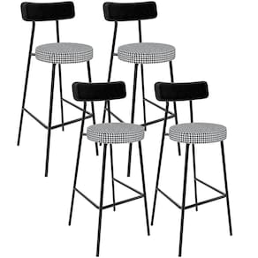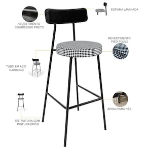 Amplamente moderna, dispondo de muito realce e design singular, o Kit 04 Banquetas Alta Cozinha Sala De Jantar Aço Milão L02 Couríssimo Preto Pied Poule - Lyam Decor vem com a personalidade e elegância que sua decoração merece! Estruturada em aço carbono, contrasta lindamente com o encosto e assento estofados, cabe mencionar ainda o revestimento do seu encosto em Couríssimo e do assento em Pied Poule, é confeccionada por materiais de excelente qualidade, extremamente resistentes e aconchegantes.