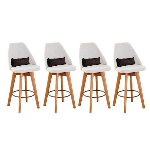 Kit 04 Banquetas Alta Maya Giratória Com Encosto Gourmet Linho Bege E Almofada Sintético Marrom - Aurora Line Banqueta Maya Giratória - Aurora Line A Banqueta Maya possui assento e pés em madeira eucalipto com sistema giratório! Os pés contam com um reforço que proporciona um suporte de peso de até 120 Kgs.O assento é revestido com espuma D-23. Além de bonita e charmosa, vai trazer para seu ambiente elegância e proporcionará conforto para sua família e amigos nos momentos de lazer.