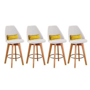 Kit 04 Banquetas Alta Maya Giratória Com Encosto Gourmet Linho Bege E Almofada Suede Amarelo - Aurora Line Banqueta Maya Giratória - Aurora Line A Banqueta Maya possui assento e pés em madeira eucalipto com sistema giratório! Os pés contam com um reforço que proporciona um suporte de peso de até 120 Kgs.O assento é revestido com espuma D-23. Além de bonita e charmosa, vai trazer para seu ambiente elegância e proporcionará conforto para sua família e amigos nos momentos de lazer.