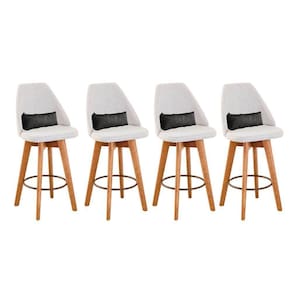 Kit 04 Banquetas Alta Maya Giratória Com Encosto Linho Bege Claro E Almofada Corino Cinza - Aurora Line