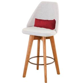 Kit 04 Banquetas Alta Maya Giratória Com Encosto Linho Bege Claro e Almofada Corino Vermelho - Aurora Line - Blush