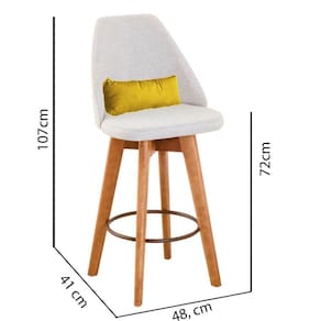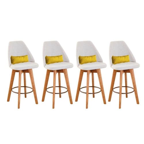 Kit 04 Banquetas Alta Maya Giratória Com Encosto Linho Bege Claro e Almofada Sintético Amarelo - Aurora Line - Blush