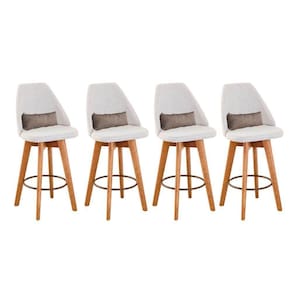 Kit 04 Banquetas Alta Maya Giratória Com Encosto Linho Bege Claro E Almofada Sintético Bege - Aurora Line Banqueta Maya Giratória - Aurora Line A Banqueta Maya possui assento e pés em madeira eucalipto com sistema giratório! Os pés contam com um reforço que proporciona um suporte de peso de até 120 Kgs.O assento é revestido com espuma D-23. Além de bonita e charmosa, vai trazer para seu ambiente elegância e proporcionará conforto para sua família e amigos nos momentos de lazer.