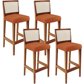 O Kit 04 Banquetas Alta Para Cozinha Encosto em Tela Branco Zion L02 Tecido Terracota - Lyam Decor, possui um estilo rustico que faltava para deixar sua casa ainda mais clássica. Seu encosto com o detalhe de tela sintética na cor branca trazem ainda mais estilo e destaque para sua decoração, junto com assento estofado que proporciona horas de conforto. A estrutura e o apoio para os pés, são responsáveis por garantir maior segurança à mesma. Pode ser acomodada em cozinha americana, ambientes integrados, espaços gourmets, bancadas ou em seu home bar, independente do lugar, ela desperta logo de cara o bom gosto e elegância, deixando tudo mais despojado, perfeita para criar um ambiente harmonioso e agradável para receber a família e amigos, sempre com muita receptividade!