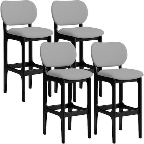 Amplamente sofisticado, o Kit 04 Banquetas Alta Bar Cozinha Sala Jantar Fixa Betta L02 Preto Facto Cinza - Lyam Decor irá agregar ainda mais valor em sua decoração!! Sendo capaz de compor muito bem o ambiente, é produzido com materiais de excelente qualidade, a resistente estrutura em madeira de Taeda, na cor preto, conta com apoio para os pés (que garante maior ), além do assento e encosto estofados super confortáveis e convidativos, que são revestidos em tecido Facto , extremamente elegante.