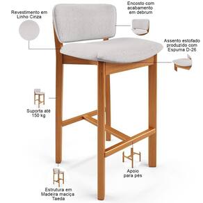 Na cozinha ou qualquer outro ambiente, o Kit 04 Banquetas Alta Para Cozinha Sala de Jantar Bar Dara se destaca por seu design clássico, sem deixar de exaltar a delicadeza deste modelo. Com uma estrutura de madeira que exala nobreza e sofisticação, essa banqueta estofada é o convite perfeito para momentos de confraternizar. O estofado macio, harmoniza com os demais elementos do ambiente, além do encosto proporcionar muito conforto enquanto se desfruta de momentos incríveis com aconchego. A vida é feita de pequenas celebrações, e essa banqueta está pronta para torná-las ainda mais especiais. Adicione ao seu carrinho e aproveite!