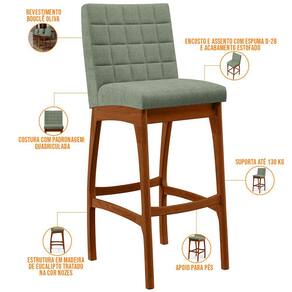 Entregando muita excelência, a Banqueta Alta Para Cozinha Sala De Jantar Fixa Mila B04 Bouclê Oliva - Lyam Decor é o complemento que faltava para deixar sua casa ainda mais extraordinária. Seu encosto com costura em padrão quadriculado e assento estofados, centralizam em si uma graciosidade estonteante, sem perder todo o conforto, sendo revestidos pelo riquíssimo tecido em bouclê que por si só já é um espetáculo. A estrutura em madeira, na cor nozes, também é digna de notoriedade, por imprimir bastante personalidade a sua decoração. Vale ressaltar ainda, o apoio para os pés que garante maior segurança à mesma.