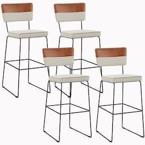 O espetáculo que é o Kit 04 Banquetas Altas Sala Jantar Allana L02 Faixa Couríssimo Camel Linho Champagne - Lyam Decor vem para agregar ainda mais valor na decoração da sua casa. Sua estrutura em aço remete-nos ao estilo industrial que surgiu em Nova York no século XX, já o assento e encosto estofados trazem equilíbrio e conforto criando a combinação perfeita para o ambiente.