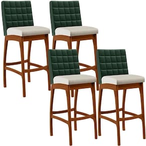 ndo muita excelência, o Kit 04 Banquetas Altas Sala De Jantar Fixa Mila B04 Facto Verde Musgo Linho Champagne - Lyam Decor é o complemento que faltava para deixar sua casa ainda mais extraordinária. Seu encosto com costura em padrão quadriculado e assento estofados, centralizam em si uma graciosidade estonteante, sem perder todo o conforto. A estrutura em madeira, na cor nozes, também é digna de notoriedade, por imprimir bastante personalidade a sua decoração. Vale ressaltar ainda, o apoio para os pés que garante maior segurança à banqueta.