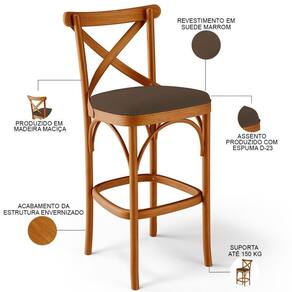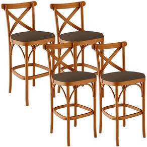 Kit 04 Banquetas Altas Cozinha Bancada Bar Sala De Jantar Estofada ávila L02 Suede Marrom - Lyam