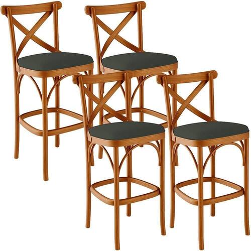 Kit 04 Banquetas Altas Cozinha Bancada Bar Sala Jantar Estofada ávila L02 Linho Verde Musgo - Lyam