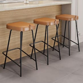Banqueta Alta Estofada Vik ideal para quem busca praticidade, conforto e um visual moderno em bancadas. Com estrutura em aço carbono e pintura epóxi, oferece firmeza no uso diário e ótima durabilidade, sendo perfeita para compor cozinhas, áreas gourmet, bares e espaços de churrasqueira com um toque minimalista e atual.