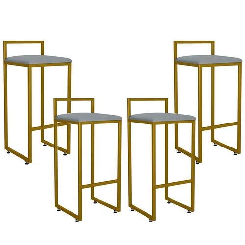 Kit 04 Banquetas Altas Para Cozinha Sala De Jantar Hanna L02 Dourado Suede Cinza - Lyam Decor O seu sonho é ter uma cozinha integrada? Uma banqueta pode ser fator determinante para ajudar nesta tarefa, principalmente se você contar com o modelo Kit 04 Banquetas Altas Para Cozinha Sala De Jantar Hanna L02 Dourado Suede Cinza - Lyam Decor. Ideal para quem deseja montar uma cozinha americana ou agregar valor à sua área gourmet, o modelo possui design slim que é super apropriado para apartamentos ou para quem tem uma cozinha compacta. Outro ponto positivo é que este modelo não possui braços, sendo assim ocupa menos espaço e torna melhor para circulação. Ah, também possui apoio para os pés, elemento fundamental para a ergonomia e conforto. As opções de são infinitas, seja para um living, recepção, hall de entrada, sala de jantar, área gourmet ou ambiente corporativo. Para ter um espaço vital procure a distância mínima de 50 cm entre as banquetas. Desta forma a organização ficará harmônica e muito confortável para utilização. Dimensões do produto (A x L x P) 81 x 35 x 36 cm Altura do assento ao chão: 66 cm Características: Estrutura de Ferro com espessura de 20mm. Acabamento em pintura eletrostática cor Dourado. Estrutura do assento em Madeira de Eucalipto. Assento fixo com espuma certificada D-23. Revestimento Suede Cinza. Sapatas Niveladoras. Peso suportado: Até 150 kg. - Por se tratar de estofado as medidas podem ter uma pequena variação de até 3 cm. - A tonalidade do produto real poderá ter ligeira variação devido o lote de tecidos. Observações importantes: - Produto para residencial em ambiente interno, não devendo ficar exposto diretamente ao sol, calor e umidade excessivos. - Pode haver alguma diferença de tonalidade entre a imagem e o produto real, por conta do tratamento de imagens e a calibração de cores do seu monitor. - As imagens são meramente ilustrativas, não acompanham objetos de decoração e eletrônicos. , caso haja alguma não assine o comprovante de recebimento. - Montagem, desmontagem e outras instalações serão de responsabilidade do cliente. Não nos responsabilizamos, no ato da entrega, por subir escadas/elevadores ou pelo transporte por guincho em apartamentos. Eventuais despesas são de responsabilidade do comprador. - Confira as dimensões do produto e certifique-se de que passará normalmente por supostos elevadores, portas, escadas e/ou corredores de sua residência. NA