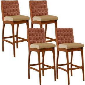 ndo muita excelência, o Kit 04 Banquetas Altas Sala De Jantar Fixa Mila B04 Couríssimo Camel Linho Bege Escuro - Lyam Decor é o complemento que faltava para deixar sua casa ainda mais extraordinária. Seu encosto com costura em padrão quadriculado e assento estofados, centralizam em si uma graciosidade estonteante, sem perder todo o conforto. A estrutura em madeira, na cor nozes, também é digna de notoriedade, por imprimir bastante personalidade a sua decoração. Vale ressaltar ainda, o apoio para os pés que garante maior à banqueta.