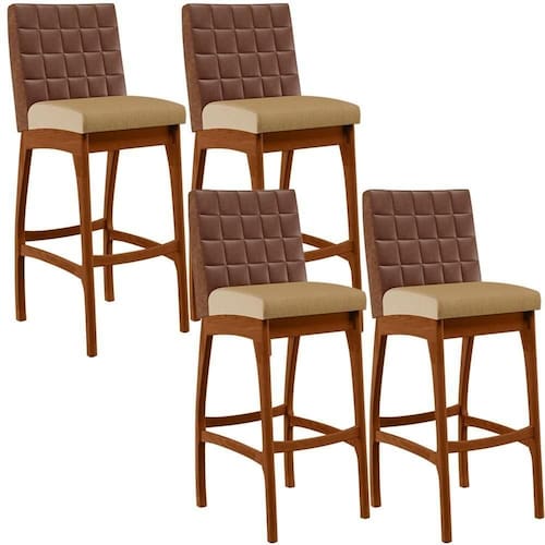 ndo muita excelência, o Kit 04 Banquetas Altas Sala De Jantar Fixa Mila B04 Couríssimo Marrom Linho Bege Escuro - Lyam Decor é o complemento que faltava para deixar sua casa ainda mais extraordinária. Seu encosto com costura em padrão quadriculado e assento estofados, centralizam em si uma graciosidade estonteante, sem perder todo o conforto. A estrutura em madeira, na cor nozes, também é digna de notoriedade, por imprimir bastante personalidade a sua decoração. Vale ressaltar ainda, o apoio para os pés que garante maior segurança à banqueta.