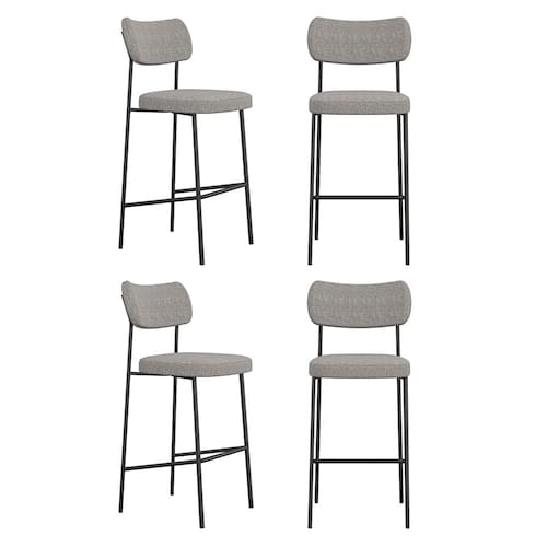 Kit 04 Banquetas Altas Para Cozinha Lila Estofada com Encosto Linho Cinza - Desk Design