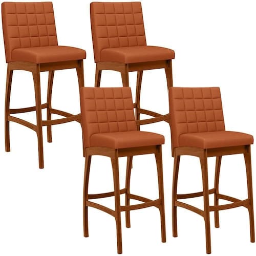 ndo muita excelência, o Kit 04 Banquetas Altas Para Cozinha Sala De Jantar Fixa Mila B04 Tecido Terracota - Lyam Decor é o complemento que faltava para deixar sua casa ainda mais extraordinária. Seu encosto com costura em padrão quadriculado e assento estofados, centralizam em si uma graciosidade estonteante, sem perder todo o conforto. A estrutura em madeira, na cor nozes, também é digna de notoriedade, por imprimir bastante personalidade a sua decoração. Vale ressaltar ainda, o apoio para os pés que garante maior à mesma. Pode ser acomodado em cozinha americana, ambientes integrados, espaços gourmets, bancadas ou em seu home bar, independente do lugar, desperta logo de cara bastante elegância e deixa tudo mais despojado, perfeita para criar um ambiente harmonioso e agradável para receber a família e amigos, quando favorável. Não perca tempo e adquira já a sua!!