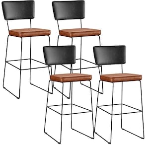O espetáculo que é o Kit 04 Banquetas Altas Sala Jantar Fixa Allana L02 Couríssimo Preto Couríssimo Camel - Lyam Decor vem para agregar ainda mais valor na decoração da sua casa. Sua estrutura em aço remete-nos ao estilo industrial que surgiu em Nova York no século XX, já o assento e encosto estofados trazem equilíbrio e conforto criando a combinação perfeita para o ambiente.