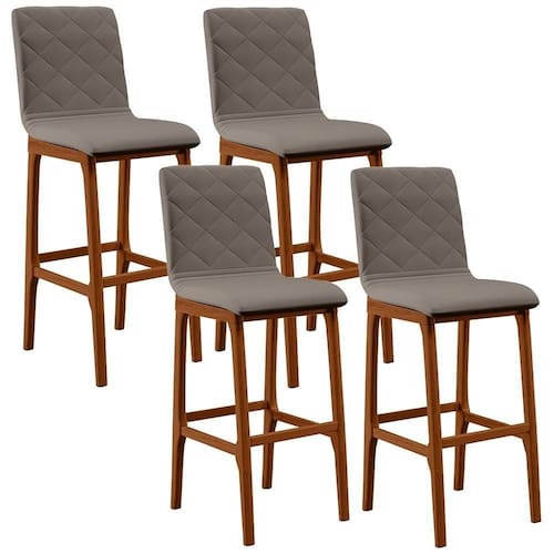 O complemento perfeito para o seu ambiente existe e está aqui! O Kit 04 Banquetas Altas Para Cozinha Sala de Jantar Fixa Zoe B04 Linho Bege - Lyam Decor vai ampliar totalmente a maneira como você compunha sua decoração, numa pegada clássica, com belíssima estrutura em madeira, na cor nozes, possui assento e encosto estofados super confortáveis e convidativos, além do apoio para os pés que garante maior .