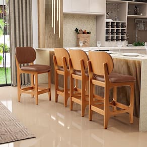 Amplamente sofisticada, o Kit 04 Banquetas Baixa Bar Cozinha Sala Jantar Betta L02 Imbuia Couríssimo Marrom - Lyam Decor irá agregar ainda mais valor em sua decoração!! Sendo capaz de compor muito bem o ambiente, é produzida com materiais de excelente qualidade, a resistente estrutura em madeira de Taeda, na cor imbuia, conta com apoio para os pés (que garante maior segurança), além do assento e encosto estofados super confortáveis e convidativos, que são revestidos em tecido Couríssimo, composição extremamente elegante.