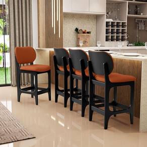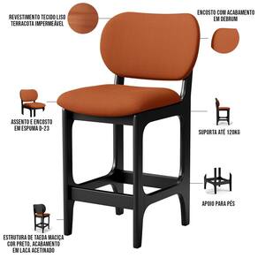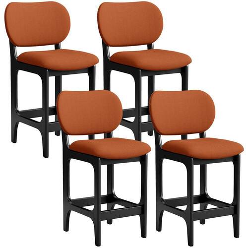 Amplamente sofisticada, o Kit 04 Banquetas Baixa Bar Cozinha Sala Jantar Betta L02 Tecido Terracota - Lyam Decor irá agregar ainda mais valor em sua decoração!! Sendo capaz de compor muito bem o ambiente, é produzida com materiais de excelente qualidade, a resistente estrutura em madeira de Taeda, na cor Preto, conta com apoio para os pés (que garante maior segurança), além do assento e encosto estofados super confortáveis e convidativos, que são revestidos em tecido Couríssimo, composição extremamente elegante.