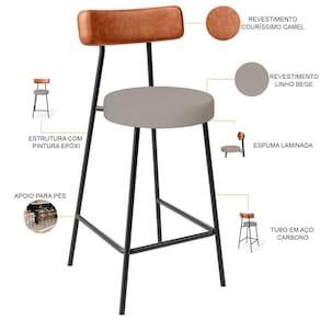 Amplamente moderna, dispondo de muito realce e design singular, o Kit 04 Banquetas Baixa Para Cozinha Sala De Jantar Bar Bancada Milão L02 Couríssimo Camel Linho Bege - Lyam Decor vem com a personalidade e elegância que sua decoração merece! Estruturada em aço carbono, contrasta lindamente com o encosto e assento estofados, cabe mencionar ainda seu revestimento em Couríssimo, é confeccionada por materiais de excelente qualidade, extremamente resistentes e aconchegantes.