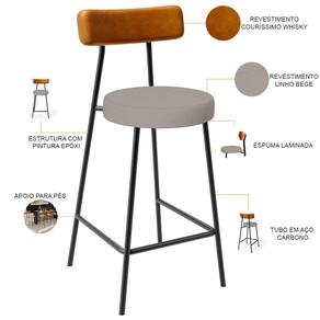 Amplamente moderna, dispondo de muito realce e design singular, o Kit 04 Banquetas Baixa Para Cozinha Sala De Jantar Bar Bancada Milão L02 Couríssimo Whisky Linho Bege - Lyam Decor vem com a personalidade e elegância que sua decoração merece! Estruturada em aço carbono, contrasta lindamente com o encosto e assento estofados, cabe mencionar ainda seu revestimento em Couríssimo, é confeccionada por materiais de excelente qualidade, extremamente resistentes e aconchegantes.
