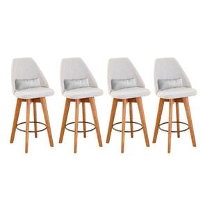 Kit 04 Banquetas Alta Maya Giratória Com Encosto Linho Bege Claro E Almofada Sintético Branco - Gat Magazine Banqueta Maya Giratória - GAT MAGAZINE A Banqueta Maya possui assento e pés em madeira eucalipto com sistema giratório! Os pés contam com um reforço que proporciona um suporte de peso de até 120 Kgs.O assento é revestido com espuma D-23. Além de bonita e charmosa, vai trazer para seu ambiente elegância e proporcionará conforto para sua família e amigos nos momentos de lazer.