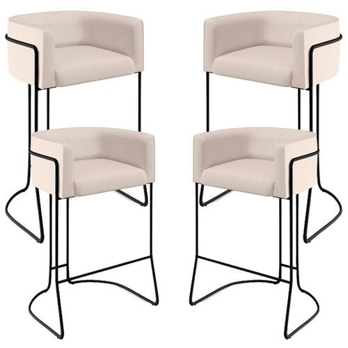 Kit 04 Banquetas Decorativas Fixa Base De Aço Preto Betina D02 Veludo Bege C-309 - Lyam Decor O Kit 04 Banquetas Decorativas Fixa Base de Aço Preto Betina D02 Veludo Bege C-309 - Lyam Decor exala formosura e elegância! Excelente opção para dispor em sua sala de estar, sala de jantar, em cozinha americana e até mesmo área gourmet. Seu protagonismo é notório, sem sombra de dúvidas é perfeita para qualquer ambientação que desejar colocá-la. Com sua resistente estrutura em aço, na cor Preto, o encosto e assento revestidos em Veludo, deixarão sua decoração ainda mais sofisticada. Oferecendo máximo conforto sem deixar de transmitir todo a magnitude que seu lar merece! Dimensões do produto (L x A x P) 59 x 92 x 44 cm Medidas Internas: Altura do Assento: 74 cm Profundidade Livre do Assento: 43 cm Largura do Assento: 41 cm Altura livre do Encosto: 17 cm Largura do braço: 8 cm Altura do braço: 17 cm Altura dos pés: 67 cm Características: Estrutura em madeira de eucalipto; Partes em MDF e OSB; Revestimento em Veludo Bege; Assento Fixo com espuma D-28 Sobre Percintas elásticas; Encosto Fixo com espuma D-23 Sobre Percintas elásticas; Braço Espuma D-23; Peso suportado: Até 120 kg; Base em aço com acabamento em pintura epóxi na cor Preto. - Por se tratar de estofado as medidas podem ter uma pequena variação de até 3 cm. - A tonalidade do produto real poderá ter ligeira variação devido o lote de tecidos. Observações importantes: - Produto para residencial em ambiente interno, não devendo ficar exposto diretamente ao sol, calor e umidade excessivos. - Pode haver alguma diferença de tonalidade entre a imagem e o produto real, por conta do tratamento de imagens e a calibração de cores do seu monitor. - As imagens são meramente ilustrativas, não acompanham objetos de decoração e eletrônicos. , caso haja alguma não assine o comprovante de recebimento. - Montagem, desmontagem e outras instalações serão de responsabilidade do cliente. Não nos responsabilizamos, no ato da entrega, por subir escadas/elevadores ou pelo transporte por guincho em apartamentos. Eventuais despesas são de responsabilidade do comprador. - Confira as dimensões do produto e certifique-se de que passará normalmente por supostos elevadores, portas, escadas e/ou corredores de sua residência. Altura Montado: 92 | Largura Montado: 59 | Profundidade Montado: 44