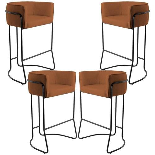 Kit 04 Banquetas Decorativas Fixa Base De Aço Preto Betina D02 Veludo Telha C-262 - Lyam Decor O Kit 04 Banquetas Decorativas Fixa Base de Aço Preto Betina D02 Veludo Telha C-262 - Lyam Decor exala formosura e elegância! Excelente opção para dispor em sua sala de estar, sala de jantar, em cozinha americana e até mesmo área gourmet. Seu protagonismo é notório, sem sombra de dúvidas é perfeita para qualquer ambientação que desejar colocá-la. Com sua resistente estrutura em aço, na cor Preto, o encosto e assento revestidos em Veludo, deixarão sua decoração ainda mais sofisticada. Oferecendo máximo conforto sem deixar de transmitir todo a magnitude que seu lar merece! Dimensões do produto (L x A x P) 59 x 92 x 44 cm Medidas Internas: Altura do Assento: 74 cm Profundidade Livre do Assento: 43 cm Largura do Assento: 41 cm Altura livre do Encosto: 17 cm Largura do braço: 8 cm Altura do braço: 17 cm Altura dos pés: 67 cm Características: Estrutura em madeira de eucalipto; Partes em MDF e OSB; Revestimento em Veludo Telha; Assento Fixo com espuma D-28 Sobre Percintas elásticas; Encosto Fixo com espuma D-23 Sobre Percintas elásticas; Braço Espuma D-23; Peso suportado: Até 120 kg; Base em aço com acabamento em pintura epóxi na cor Preto. - Por se tratar de estofado as medidas podem ter uma pequena variação de até 3 cm. - A tonalidade do produto real poderá ter ligeira variação devido o lote de tecidos. Observações importantes: - Produto para residencial em ambiente interno, não devendo ficar exposto diretamente ao sol, calor e umidade excessivos. - Pode haver alguma diferença de tonalidade entre a imagem e o produto real, por conta do tratamento de imagens e a calibração de cores do seu monitor. - As imagens são meramente ilustrativas, não acompanham objetos de decoração e eletrônicos. , caso haja alguma não assine o comprovante de recebimento. - Montagem, desmontagem e outras instalações serão de responsabilidade do cliente. Não nos responsabilizamos, no ato da entrega, por subir escadas/elevadores ou pelo transporte por guincho em apartamentos. Eventuais despesas são de responsabilidade do comprador. - Confira as dimensões do produto e certifique-se de que passará normalmente por supostos elevadores, portas, escadas e/ou corredores de sua residência. Altura Montado: 92 | Largura Montado: 59 | Profundidade Montado: 44