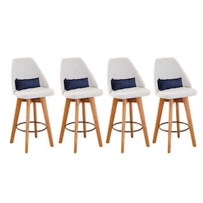 Kit 04 Banquetas Alta Maya Giratória Com Encosto Gourmet Linho Bege E Almofada Corino Azul Marinho - Gat Magazine Banqueta Maya Giratória - GAT MAGAZINE A Banqueta Maya possui assento e pés em madeira eucalipto com sistema giratório! Os pés contam com um reforço que proporciona um suporte de peso de até 120 Kgs.O assento é revestido com espuma D-23. Além de bonita e charmosa, vai trazer para seu ambiente elegância e proporcionará conforto para sua família e amigos nos momentos de lazer.